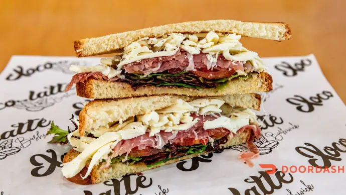 - Lunch sandwich, Prosciutto (italian ham dry-cured) combined with a mexican cheese (queso Oaxaca), mix greens, tomatoes and olive oil and vinegar dressing