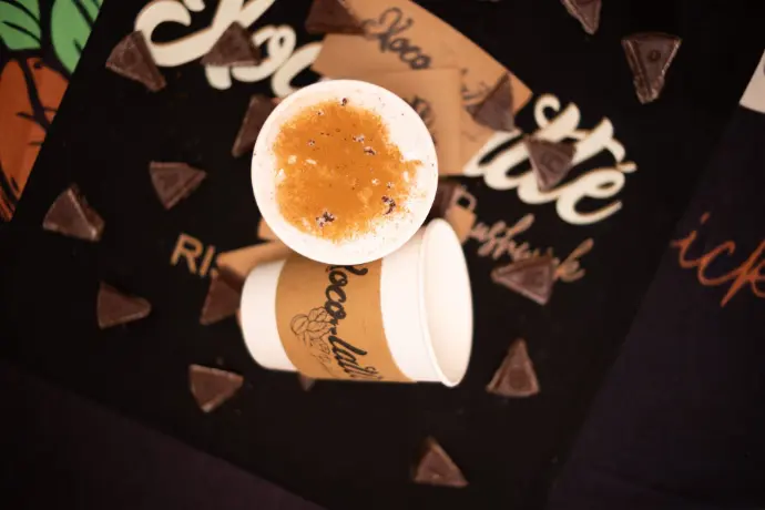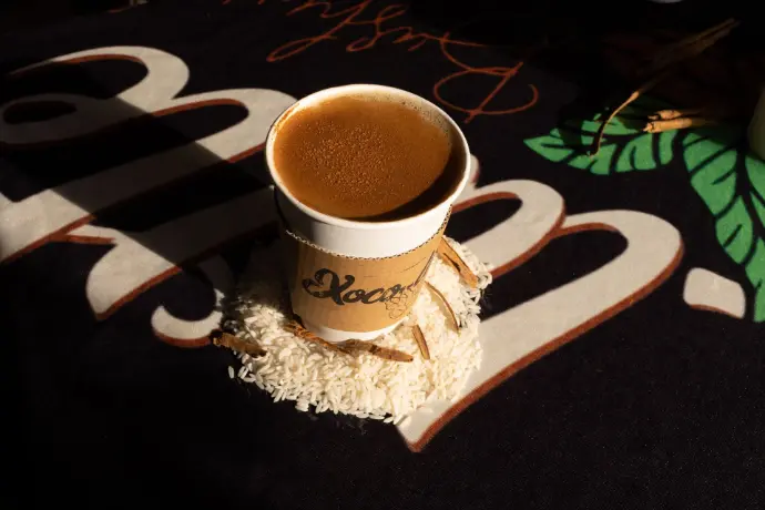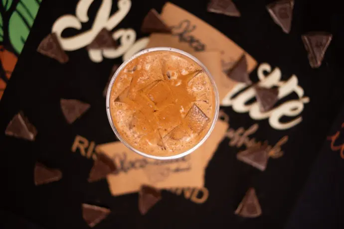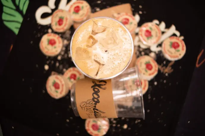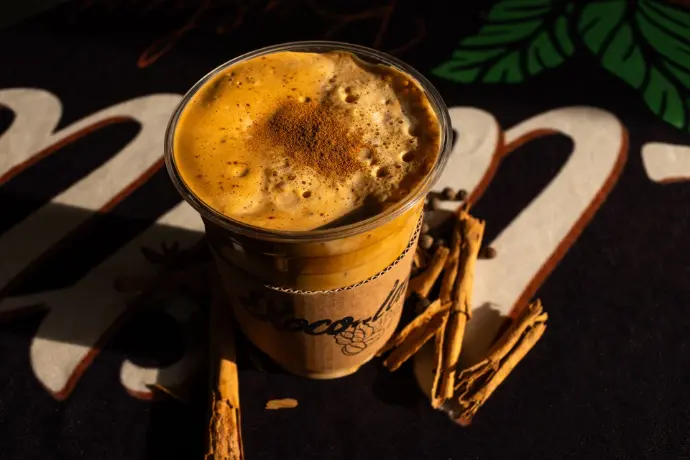Spiced "cloves, star anís, cinnamon,brown sugar" black coffee blended with ice to get a Foamy texture